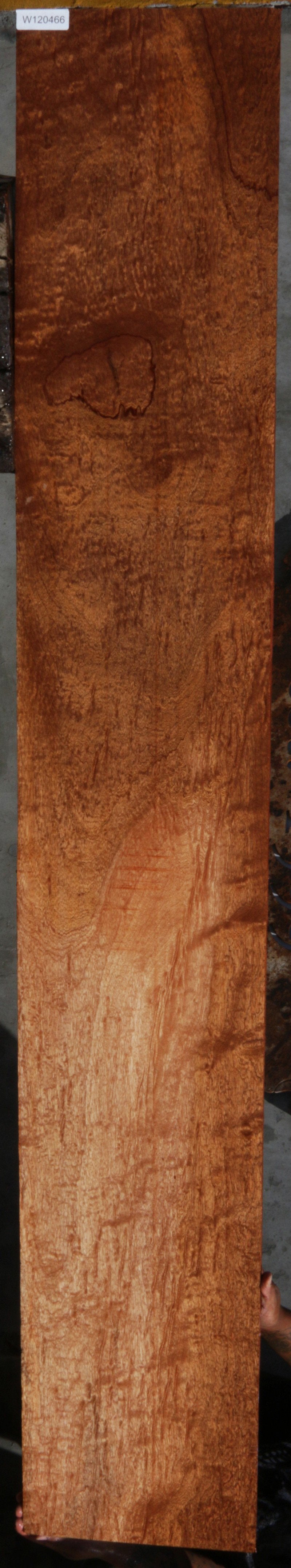 This high quality lumber has been kiln dried and surfaced on two sides. Pieces may have some slight planer bite in areas of high figure due to the interlocked grain. This wood glues and finishes well. This piece of lumber has 1 pin hole present.