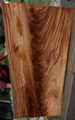 This high quality material has been kiln dried and surfaced on two sides. Pieces may have some slight planer bite in areas of high figure due to the interlocked grain. See photos for splits which can easily be filled with a clear epoxy resin. This wood glues and finishes well. This might have a cup/twist/bow up to 1/8". This slab has multiple large penetrating splits present at the center of the slab. There are numerous bark incursions present. There are some planer skips. Must be able to work with!