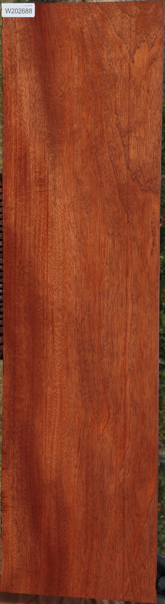 Sipo, also known as Utile, has the most similar grain to Genuine Mahogany of all the woods. The color is a uniform reddish brown with a moderate natural luster. It is prone to planer tear out due to interlocked grain. A slight cedar-like smell is present when worked. Uses include fine woodworking projects such as furniture, cabinets, instruments, veneer, turned articles, and boat building. This high quality lumber has been kiln dried and surfaced on two sides. There may be a slight bow or twist in boards 40" and longer. An occasional surface check may be present. This wood glues and finishes well. This piece has planer bite, checks, and pin holes. Please see pictures for details.