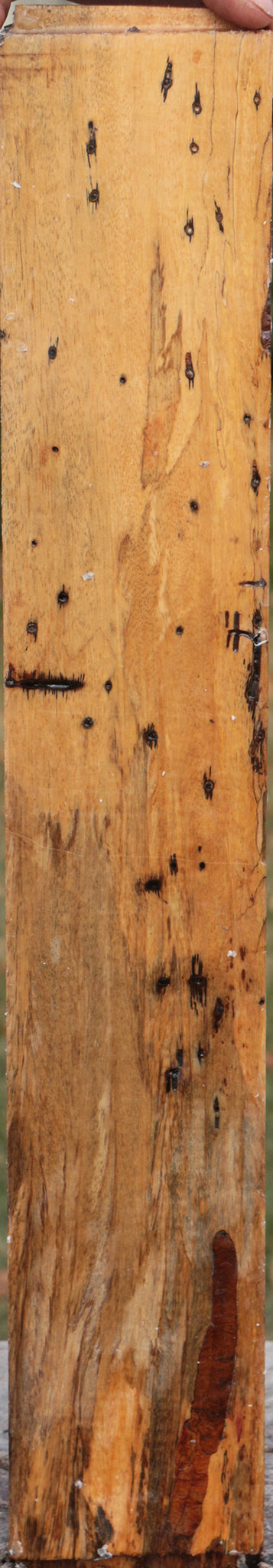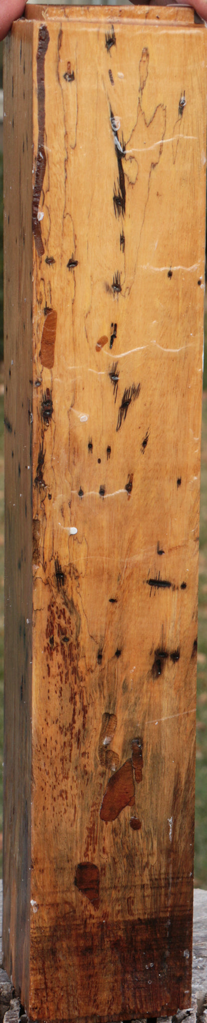 Spalted Tamarind is from Southeast Asia and has unique, black spalted color contrast. Spalted areas can benefit from CA glue if softer areas are present. An occasional check and/or pin/bug...
