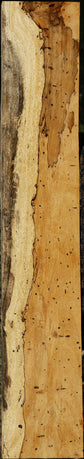 Spalted Tamarind is from Southeast Asia. Each piece has unique spalted color contrast. Spalted areas can benefit from CA glue if softer areas are present. An occasional check may be present. Pin holes or bug holes may be also be present and can often be easily viewed in the photos. Boards over 36" may have a slight 1/16" to 1/8" bow/twist. The wood is kiln dried and ready to use. Stunning projects are yielded from this species! This piece has knots, worm holes, and bug holes. Please see pictures for details.