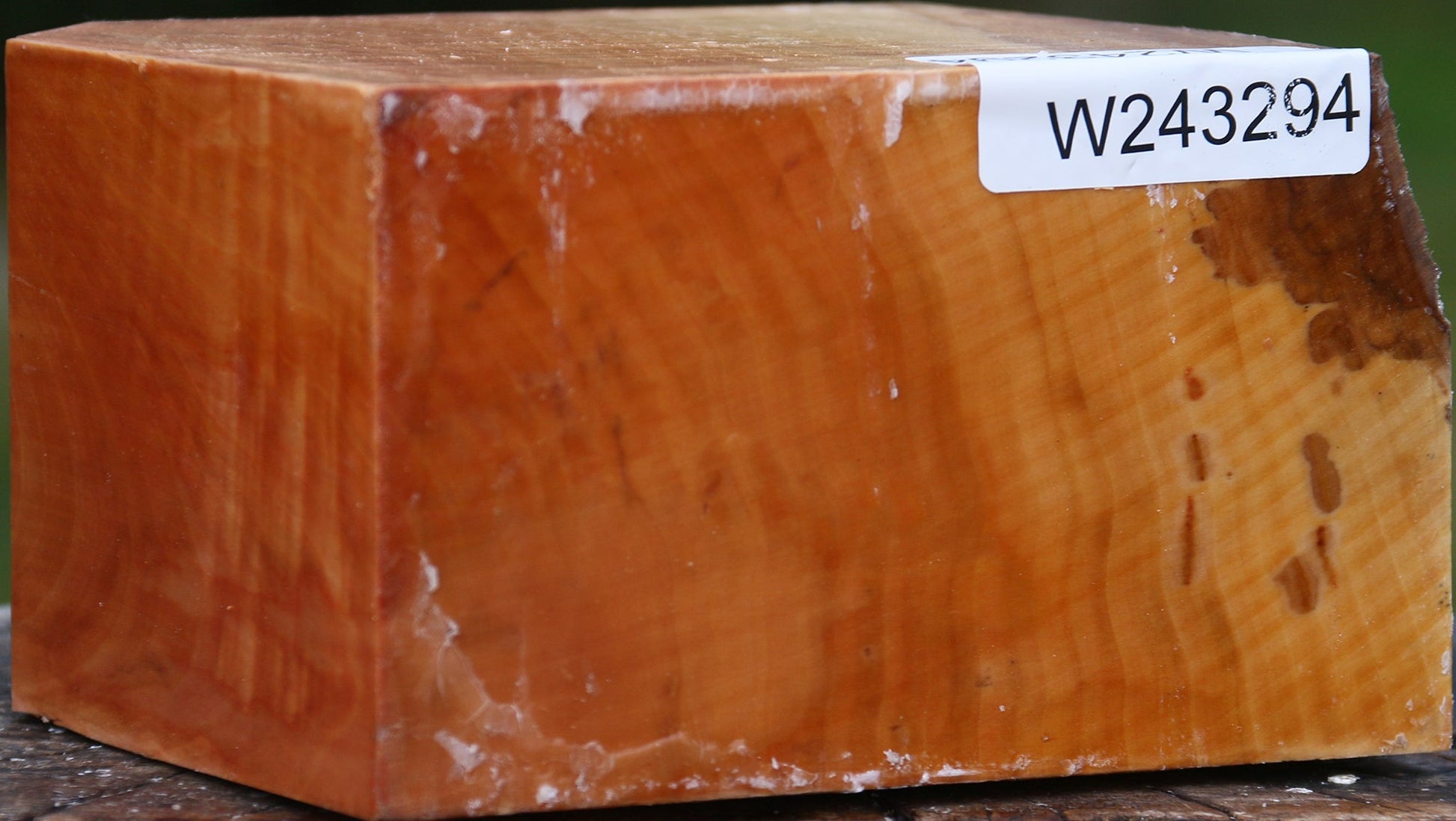 This beautiful Swiss Pear turning wood is premium grade stock that is mostly free of defects. It was freshly cut in November of 2025 and completely wax sealed, making it ideal for twice turned bowls. This fine-grained Swiss hardwood is exceptional to work. It may develop a surface or end check or shrinkage during the drying process. This piece has a rough corner, a cut corner, and inclusions. Please see pictures for details.