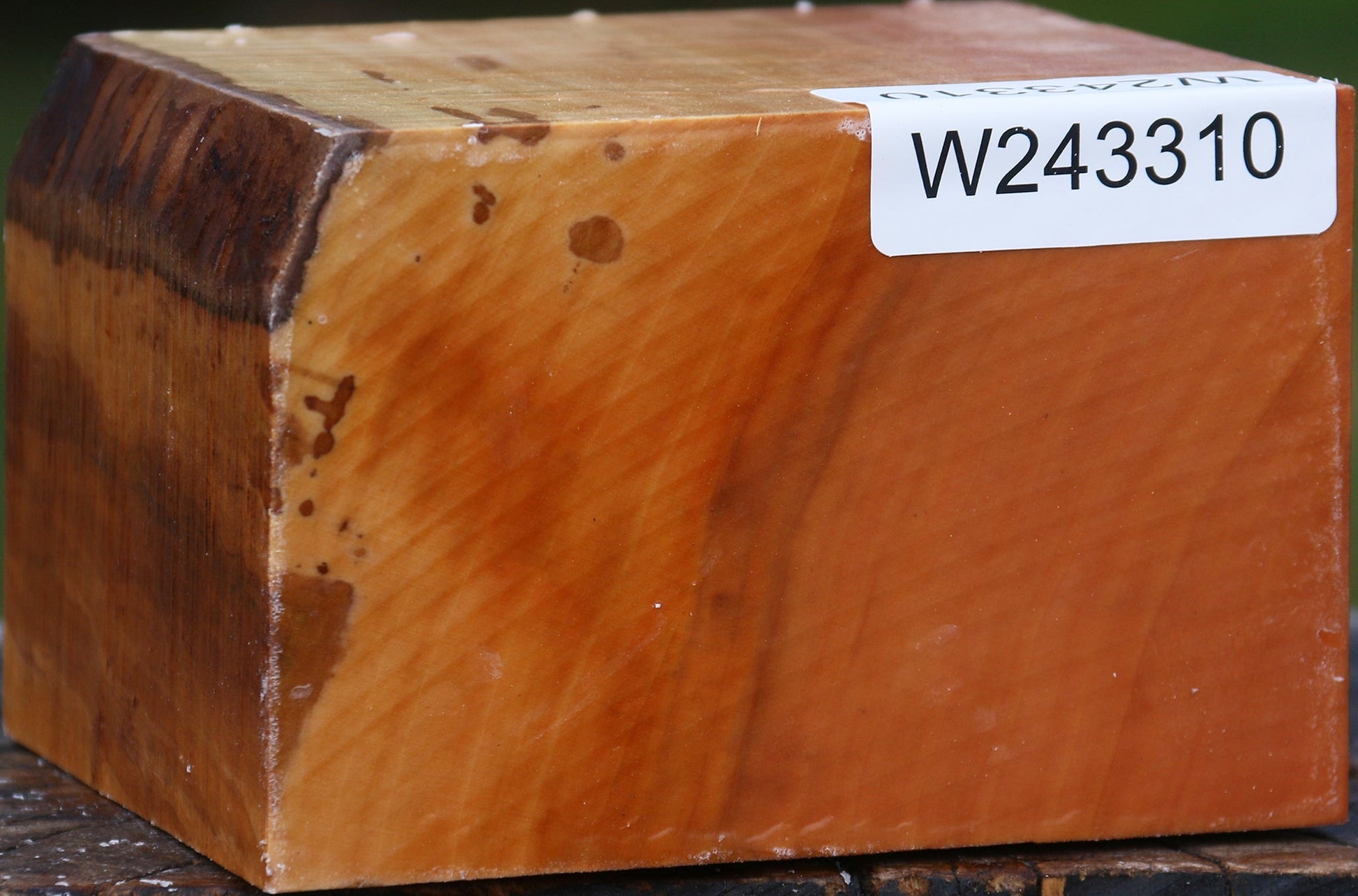 This beautiful Swiss Pear turning wood is premium grade stock that is mostly free of defects. It was freshly cut in November of 2025 and completely wax sealed, making it ideal for twice turned bowls. This fine-grained Swiss hardwood is exceptional to work. It may develop a surface or end check or shrinkage during the drying process. This piece has a partial live edge. Please see pictures for details.