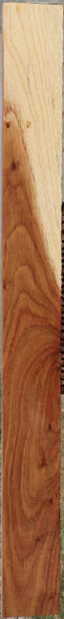 Kiln dried and surfaced on two sides, this is very clean, high grade hardwood lumber! Related to Hawaiian Koa, you’ll notice the similar iridescent shimmer of this honey golden & brown colored wood. It has excellent tonal properties and is absolutely a must have! Get it at a fraction of the cost of Koa. Boards over 36" may have a slight 1/16" to 1/8" bow. A minor end check may be present. This piece has checks, knots, and inclusions. Please see pictures for details.