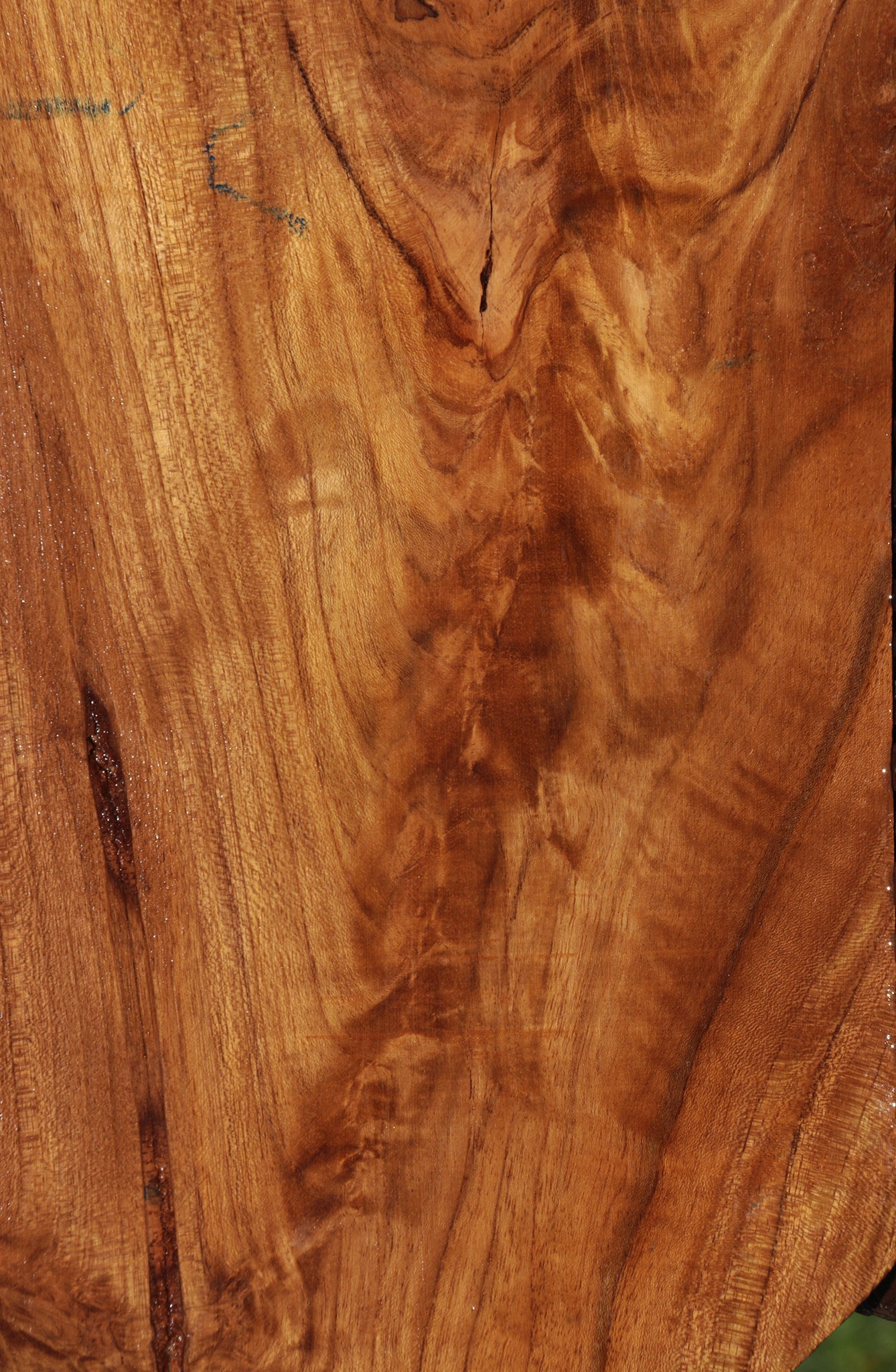 Genuine Teak is an exotic wood that is highly sought after for its water resistance, fragrant aroma, and smooth luster. A great beginner wood, this species is easy to work and very beautiful when finished. It has a moderate blunting effect on blades. This high quality lumber has been kiln dried and surfaced on two sides. An occasional partial live edge is present on some. Knots and crotchwood figured areas may contain checks or voids. A slight bow may exist in boards over 3 ft. in length. Enjoy this workable and lustrous species! This piece has checks and heartwood checks. Please see pictures for details.