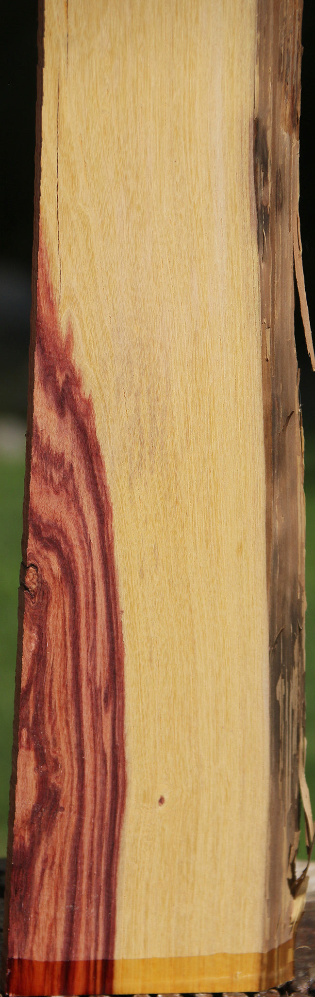 Brilliantly colored pink, this marvel of nature is a true Rosewood that has all of the incredible working properties of Rosewoods as well as a wonderful perfume aroma! It is kiln dried, surfaced on two sides, and ready to use. There may be an occasional rough edge, pin hole, or minor check present. Ships to the USA only. This piece has splits, checks, and inclusions. Please see pictures for details.