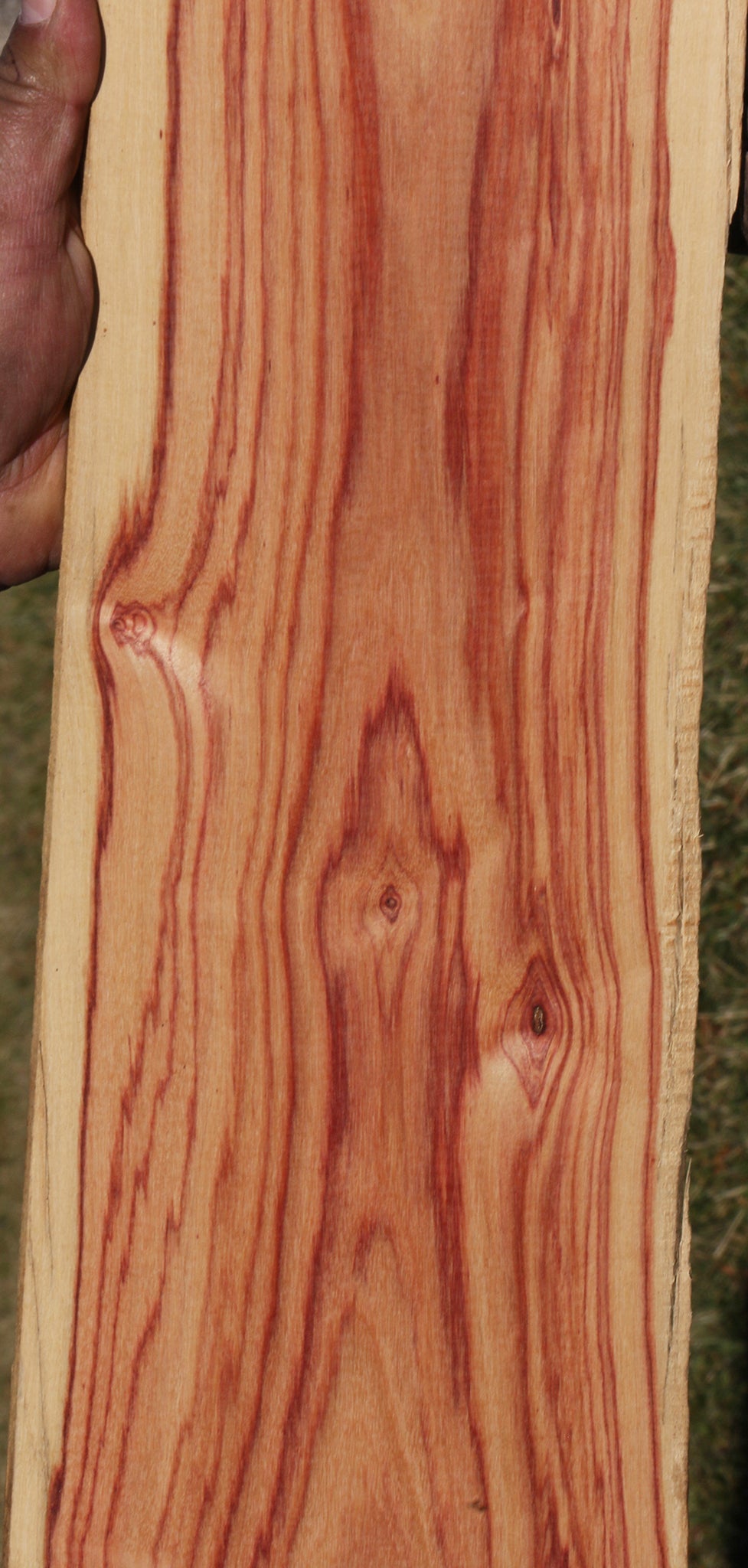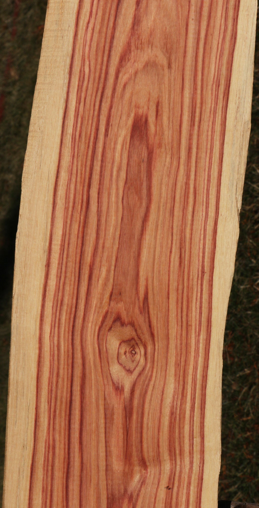 Brilliantly colored pink, this marvel of nature is a true Rosewood that has all of the incredible working properties of Rosewoods as well as a wonderful perfume aroma! It is kiln dried, surfaced on two sides, and ready to use. There may be an occasional rough edge, pin hole, or minor check present. Boards over 36" may have a slight 1/16" to 1/8" bow or twist. Ships to the USA only. This piece has checks, splits, and inclusions. Please see pictures for details.