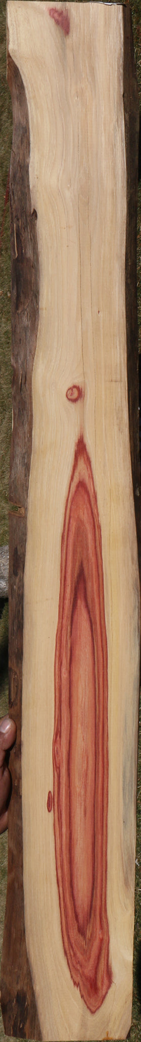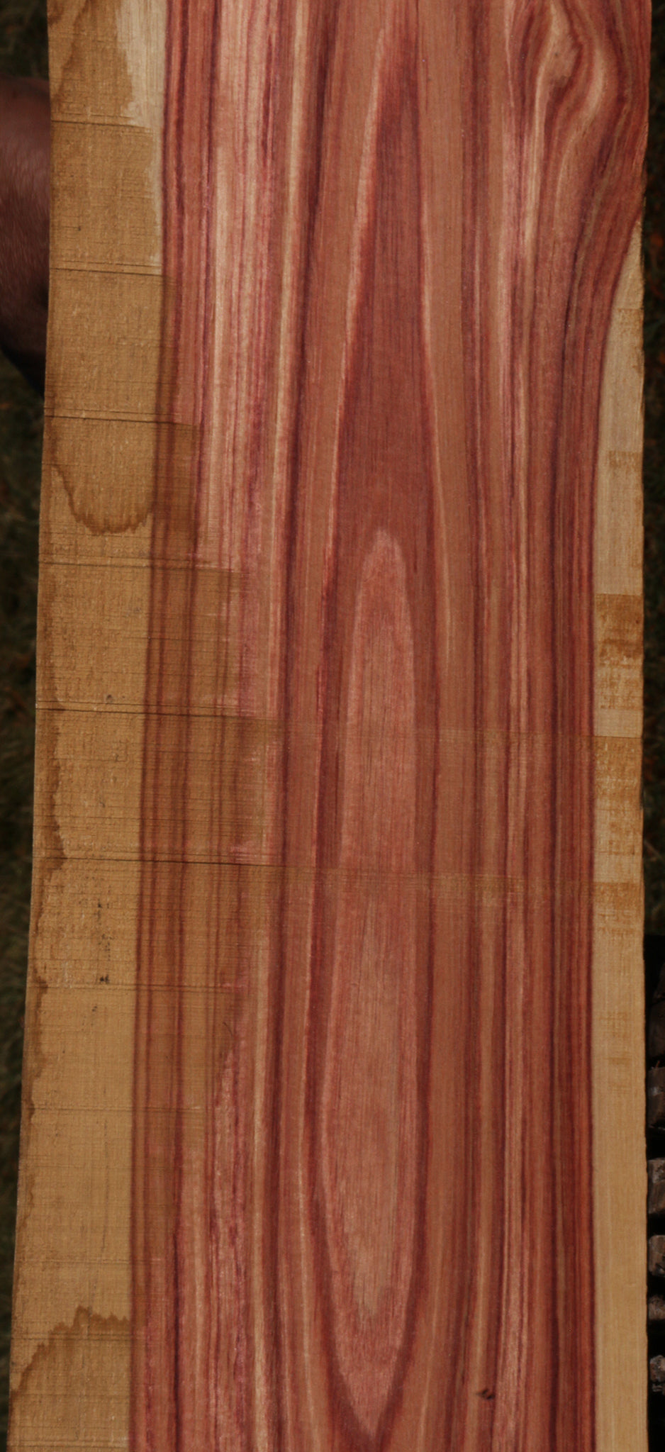 Brilliantly colored pink, this marvel of nature is a true Rosewood that has all of the incredible working properties of Rosewoods as well as a wonderful perfume aroma! It is kiln dried, surfaced on two sides, and ready to use. There may be an occasional rough edge, pin hole, or minor check present. Boards over 36" may have a slight 1/16" to 1/8" bow or twist. Ships to the USA only. This piece has checks, a machine mark, inclusions, planer skip, and splits. Please see pictures for details.
