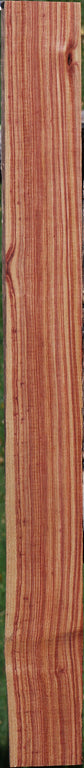 Brilliantly colored pink, this marvel of nature is a true Rosewood that has all of the incredible working properties of Rosewoods as well as a wonderful perfume aroma! It is kiln dried, aged over 15 years, surfaced on two sides, and ready to use. There may be an occasional rough edge, pin hole, or minor check present. Boards over 24" may have a slight 1/16" to 1/8" bow or twist. Ships to the USA only. This piece has inclusions and a partial live edge. Please see pictures for details.