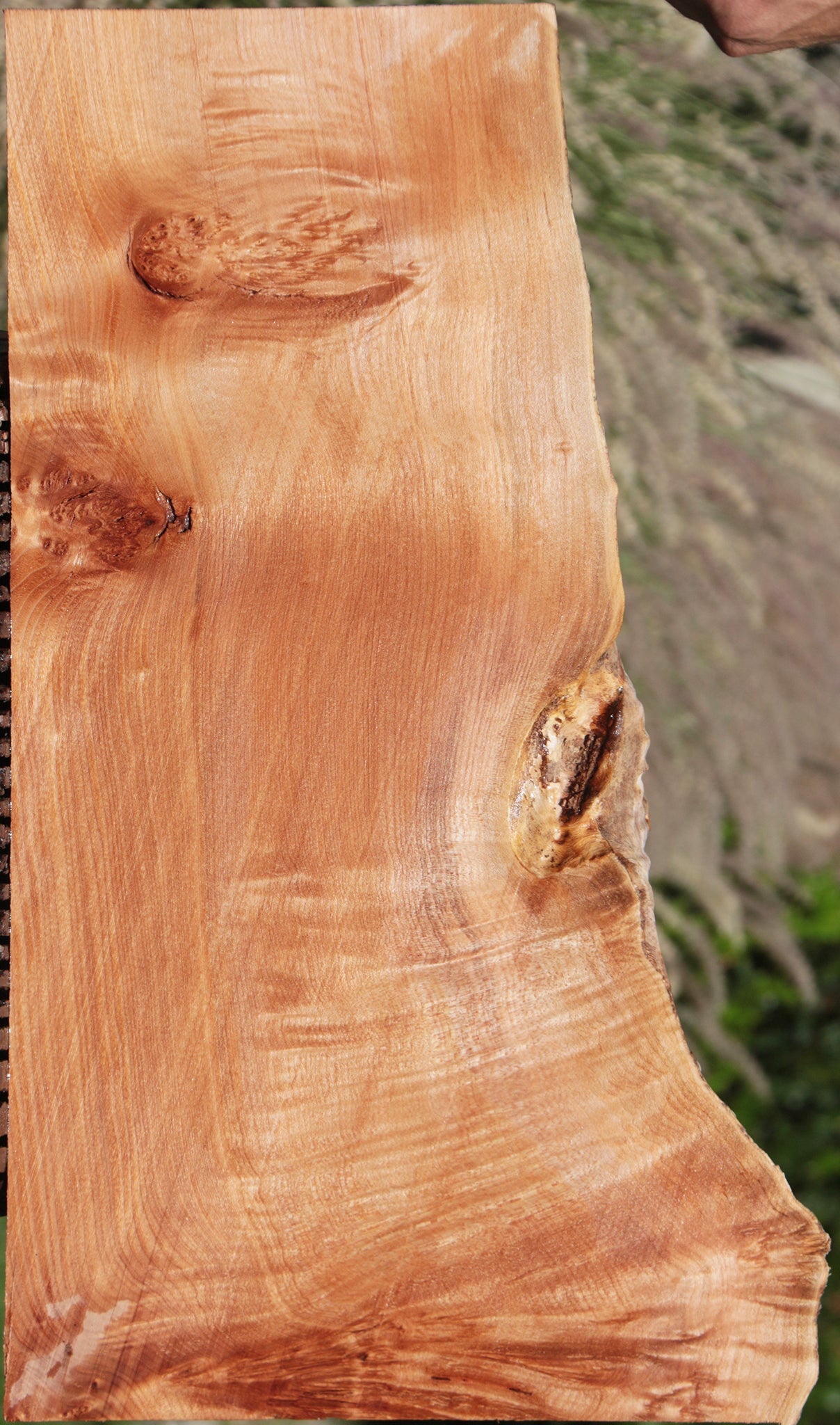 This beautiful Big Leaf Maple lumber is kiln dried and has been surfaced on two sides. It has a varying degree of quilting, fiddleback, and beautiful color. Live edges add a unique touch for creative projects. Checks and cracks can be present in the live edges. Minor end checks or inclusions are possible. 1/8" twist or bow may be present in boards over 36" long or 10" wide. This exceptional Maple is ideal for your special woodworking projects! This piece has checks and inclusions. Please see pictures for details.