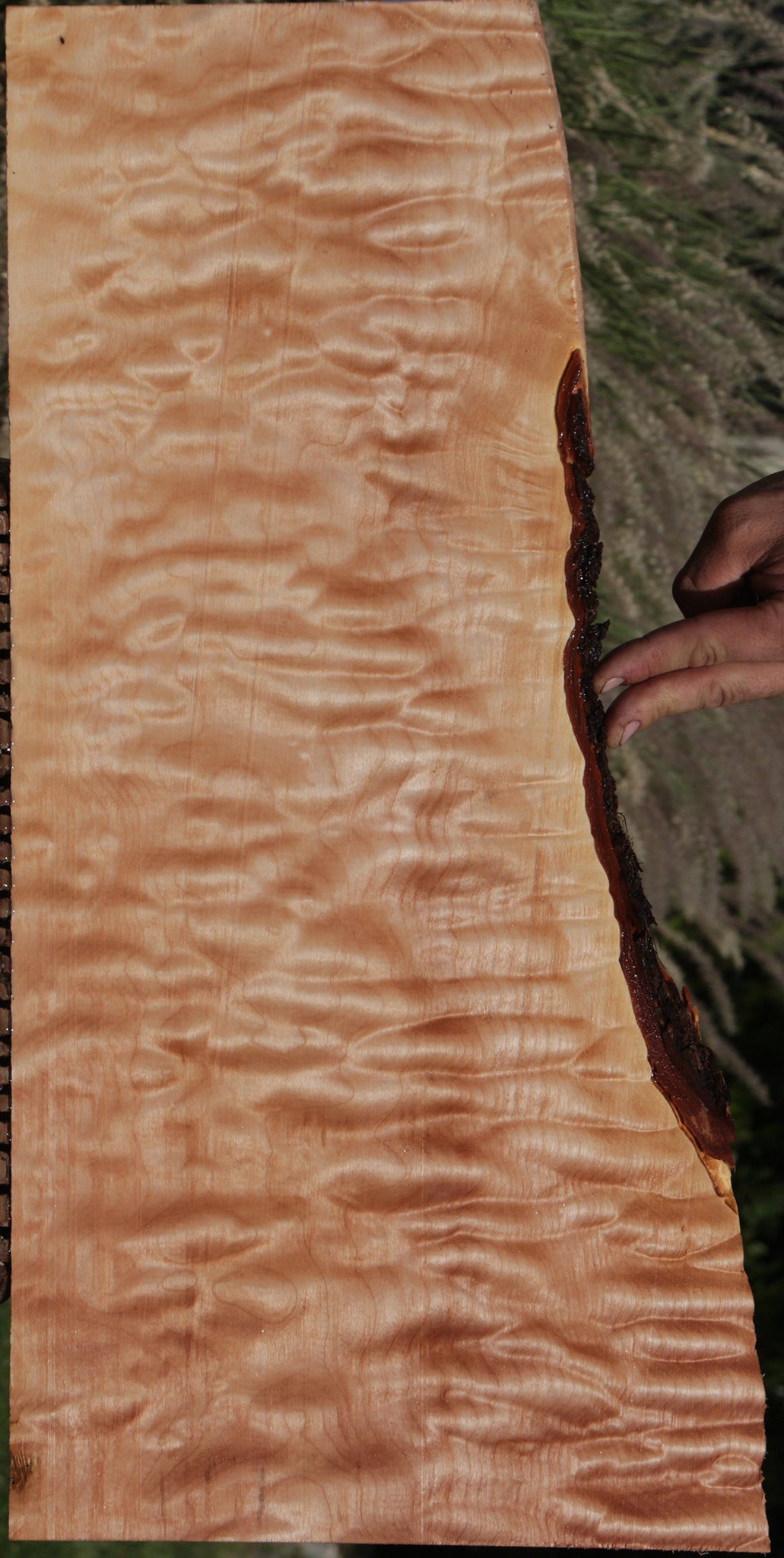 This beautiful Big Leaf Maple lumber is kiln dried and has been surfaced on two sides. It has a varying degree of quilting, fiddleback, and beautiful color. Live edges add a unique touch for creative projects. Checks and cracks can be present in the live edges. Minor end checks or inclusions are possible. 1/8" twist or bow may be present in boards over 36" long or 10" wide. This exceptional Maple is ideal for your special woodworking projects!