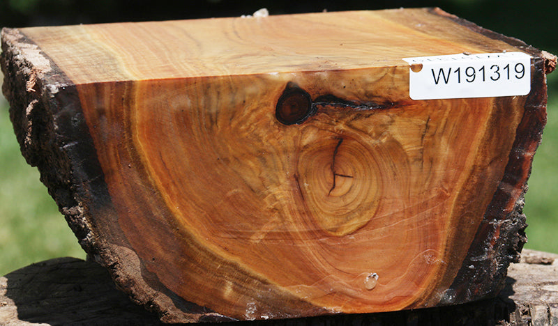 This Australian Wilga wood is a unique, rare gem from Australia's east coast. Fiddleback may be present on quarter sawn faces. This stock was freshly cut in July of 2023 and is completely wax sealed. It's perfect for twice turning! A rough corner edge or small check may be present. The high polish that is possible when turning this fine grained hardwood makes it an excellent choice for woodturners. This wood has knots and inclusions. Please see pictures for details.