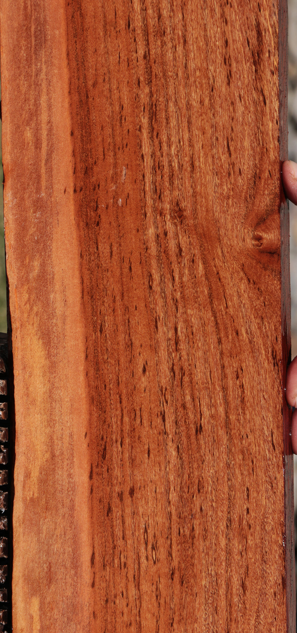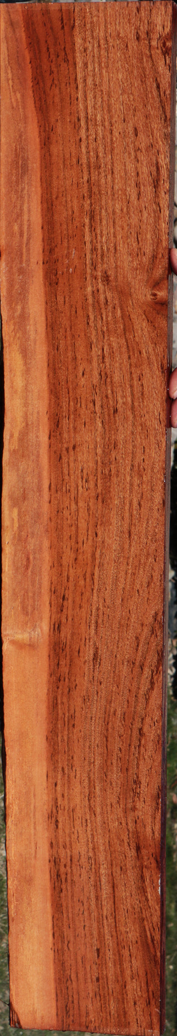 Kiln dried and surfaced on two sides, this high quality Zambezi Teak is ready for your fine woodworking projects! It is stable in service and glues well, taking a high natural polish. This species is very unusual on the US wood market. It is generally free of surface and end checks. Boards over 36" long may have a slight twist or bow of 1/16"-1/8". Zambezi Teak has also been called Mukushi by instrument makers. Pick up your piece of this unique South African hardwood today! This piece has a rough edge and knots. Please see pictures for details.