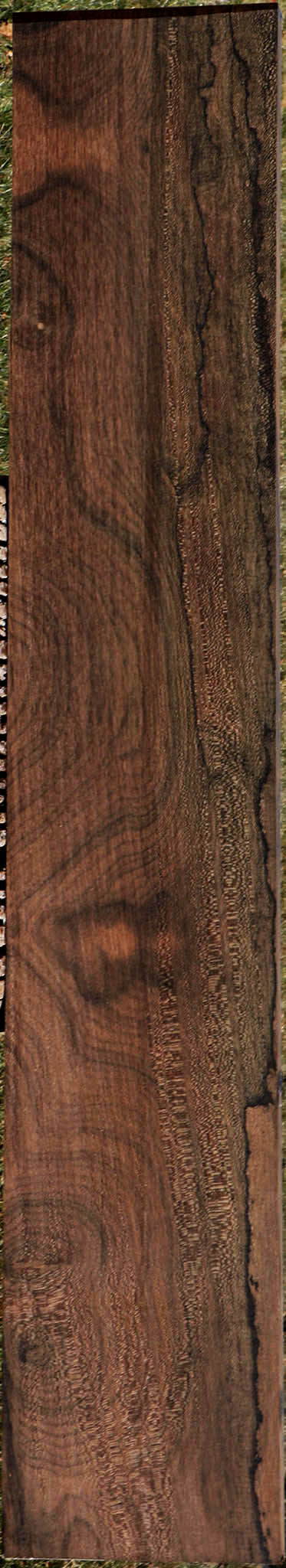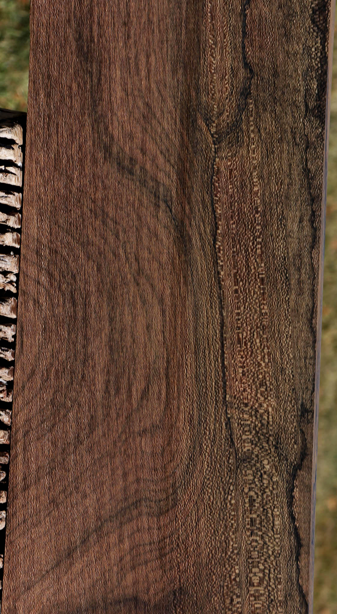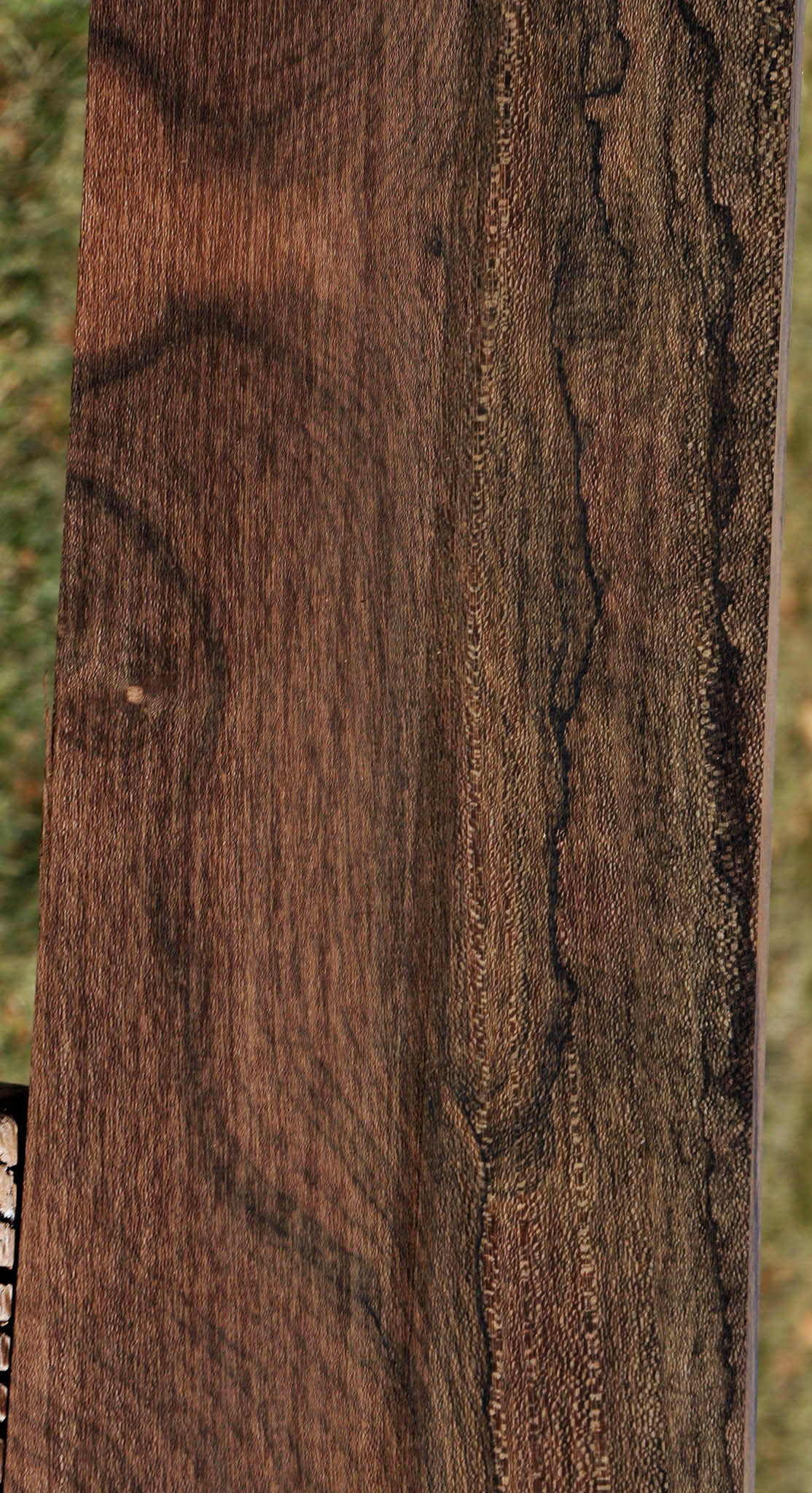 This beautiful Ziricote has been partially air dried and contains residual moisture. Lumber is surfaced on two sides and is wax sealed on the ends. Occasional faint hairline checks may be present in black streaks; these are usually on or near the sapwood. Minor end checks may be present. A 1/8" bow or twist may be present. This wood is exceptionally high quality, A grade material. It is the same material that we use to cut instrument sets that are sold to larger instrument companies. It is getting much harder to obtain, so stock up and take advantage of the wonderful pricing! This is beautiful, high quality, hard-to-find Ziricote! This piece has checks. Please see pictures for details.