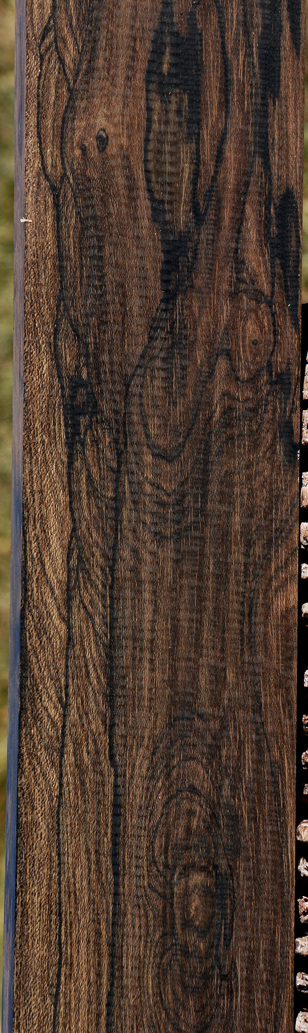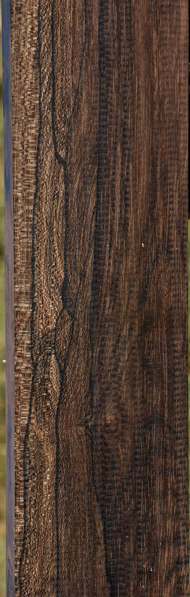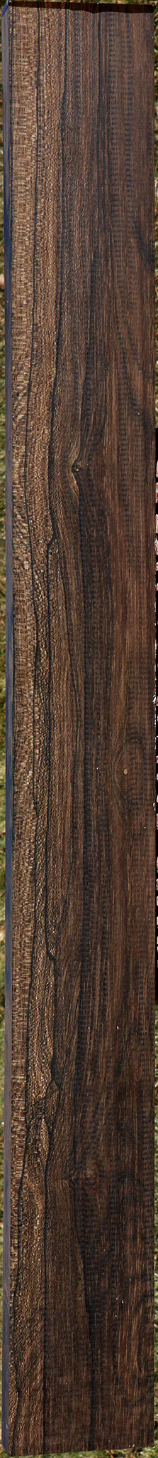 This beautiful Ziricote has been partially air dried and contains residual moisture. Lumber is surfaced on two sides and is wax sealed on the ends. Occasional faint hairline checks may be present in black streaks; these are usually on or near the sapwood. Minor end checks may be present. A 1/8" bow or twist may be present. This wood is exceptionally high quality, A grade material. It is the same material that we use to cut instrument sets that are sold to larger instrument companies. It is getting much harder to obtain, so stock up and take advantage of the wonderful pricing! This is beautiful, high quality, hard-to-find Ziricote! This piece has checks. Please see pictures for details.