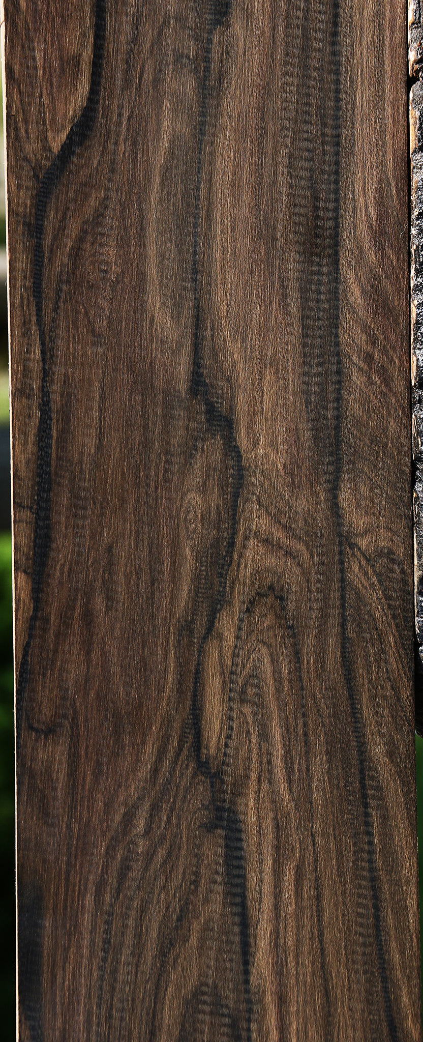 This beautiful Ziricote has been partially air dried and contains residual moisture. Lumber is surfaced on two sides and is wax sealed on the ends. Occasional faint hairline checks may be present in black streaks; these are usually on or near the sapwood. Minor end checks may be present. A 1/8" bow or twist may be present. This wood is exceptionally high quality, A grade material. It is the same material that we use to cut instrument sets that are sold to larger instrument companies. It is getting much harder to obtain, so stock up and take advantage of the wonderful pricing! This is beautiful, high quality, hard-to-find Ziricote!