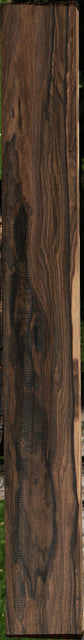 This beautiful Ziricote has been partially air dried for two years and contains residual moisture. Lumber is surfaced on two sides and is wax sealed on the ends. Occasional faint hairline checks may be present in black streaks; these are usually on or near the sapwood. Minor end checks may be present. A 1/8" bow or twist may be present. This wood is exceptionally high quality, A grade material. It is the same material that we use to cut instrument sets that are sold to larger instrument companies. It is getting much harder to obtain, so stock up and take advantage of the wonderful pricing! This is beautiful, high quality, hard-to-find Ziricote! This piece has inclusions. Please see pictures for details.