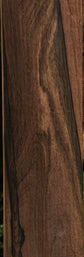 This beautiful Ziricote has been partially air dried for two years and contains residual moisture. Lumber is surfaced on two sides and is wax sealed on the ends. Occasional faint hairline checks may be present in black streaks; these are usually on or near the sapwood. Minor end checks may be present. A 1/8" bow or twist may be present. This wood is exceptionally high quality, A grade material. It is the same material that we use to cut instrument sets that are sold to larger instrument companies. It is getting much harder to obtain, so stock up and take advantage of the wonderful pricing! This is beautiful, high quality, hard-to-find Ziricote! This piece has bug holes. Please see pictures for details.